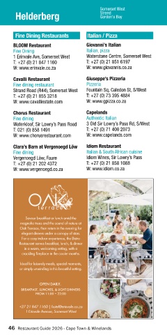 W: www.erinvale.co.za W: www.giovannis.co.za