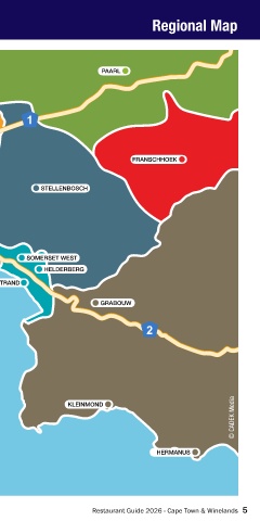 Regional Map PAARL 7 1 FRANSCHHOEK STELLENBOSCH 2 SOMERSET WEST HELDERBERG STRAND GRABOUW 2 © CADEK Media KLEINMOND © CADEK Media HERMANUS Restaurant Guide 2026 - Cape Town & Winelands