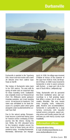 for those travelling north. Durbanville Today, Durbanville with its upmarket