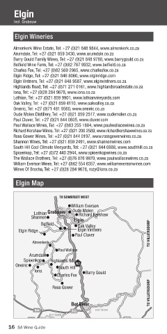 Elgin Vintners, Tel: +27 (0)21 848 9587, www.elginvintners.co.za