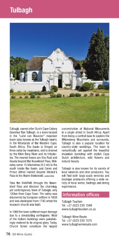 due to a devastating earthquake. Most Tulbagh Wine Route