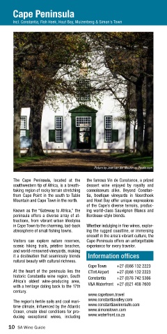 The Cape Peninsula, located at the the famous Vin de Constance, a prized
