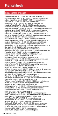 Franschhoek Cellar, Tel: +27 (0)21 876 2086, www.franschhoekcellar.co.za
