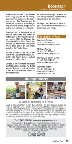 Montagu situated on the R62 at the www.tourismmcgregor.co.za